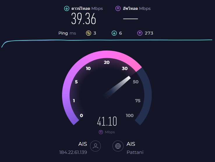 อัพโหลด คือ ความเร็วในการส่งข้อมูล มีหน่วยเป็น เมกะบิตต่อวินาที (Mbps)